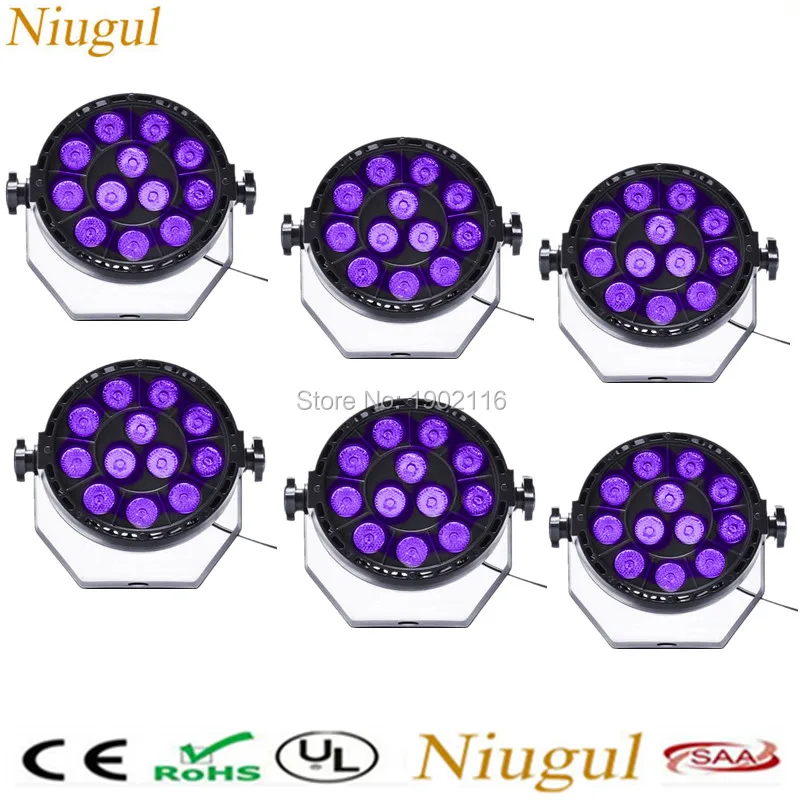 On Sale 6pcs/lot purple color LED Stage Lights 12X3W PAR LED DMX Stage Lighting Effect DMX512 Master-Slave Led Flat for DJ Disco Party