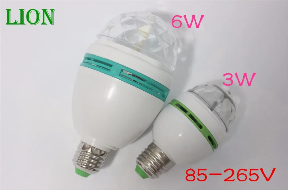On Sale E27 3W 6W Colorful Auto Rotating RGB LED Bulb Stage Light Party Lamp Disco for home decoration lighting lamps free shipping